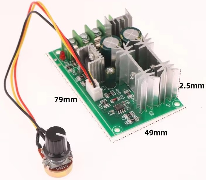 Característica: Ampla faixa de tensão: A tensão de entrada do controlador de velocidade do motor é DC10-60V, adequada para 12V 24V 36V 48V e outras tensões comuns. Método de controle PWM: O módulo de acionamento de alta potência de 1200W usa o método PWM para controlar a velocidade do motor DC. Para motor escovado DC: A corrente limite de saída de o controlador de velocidade do motor é 20A, adequado para motores escovados DC. Com potenciômetro: equipado com um potenciômetro, e o módulo tem abertura de montagem padrão , que é seguro e conveniente de operar. Fiação conveniente: é adotado o tipo de terminal de barreira, que é conveniente e rápido para a fiação e não ocupa espaço.