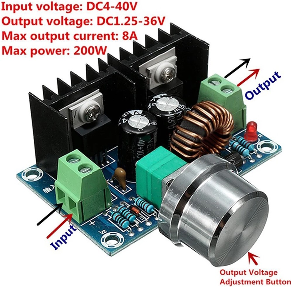 XH-M401 DC-DC Step Down Buck Converter Módulo de fonte de alimentação XL4016E1 PWM ajustável 4-40V para 1,25-36V Placa Step Down 8A 200W